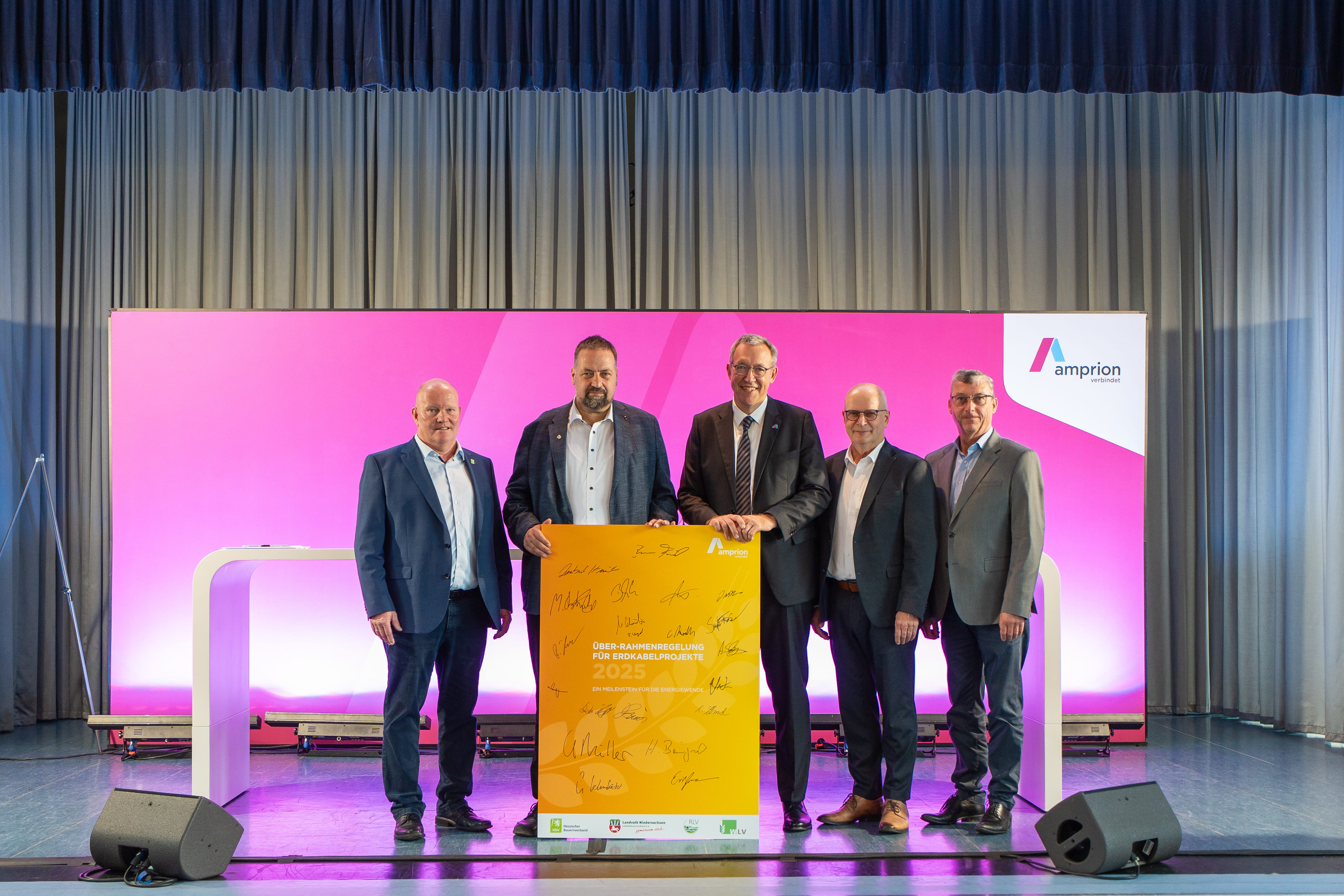Münster <wlv> Der Westfälisch-Lippische Landwirtschaftsverband hat gemeinsam mit den Landwirtschaftsverbänden aus Niedersachsen, Hessen und dem Rheinland sowie dem Netzbetreiber Amprion am gestrigen Tage erstmals eine länder- und projektübergreifende Rahmenregelung für die zukünftige Umsetzung von Erdkabelprojekten unterzeichnet. Die Vereinbarung wird insbesondere die Grundlage für die privatrechtlichen Vereinbarungen für die Energiekorridore Rhein-Main-Link, Korridor B und Windader West bilden, die sich bereits im Genehmigungsprozess befinden. Darüber hinaus wird die Rahmenregelung auch den Betroffenen von der Offshore-Anbindung BalWin1 und BalWin2 angeboten werden.