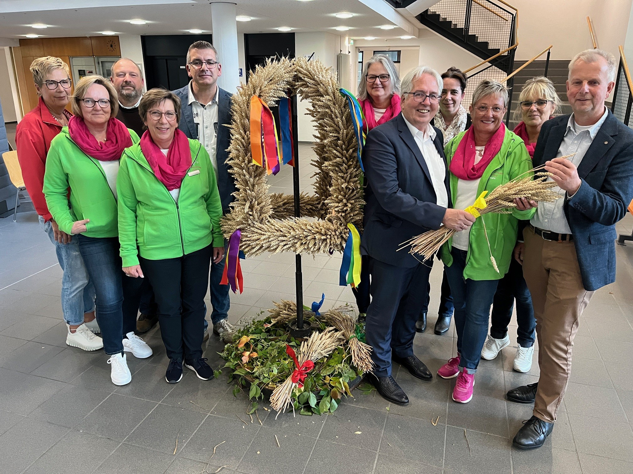 Auch Kreislandfrauenvorsitzende Beate Kipp hob das gute Miteinander mit Landrat Müller hervor. „Zur Übergabe der Erntekrone möchten wir Landfrauen nicht nur ein Symbol für die Erntezeit überreichen, sondern unserem Landrat mit der Erntekrone ein großes Dankeschön symbolisch übermitteln“, unterstreicht Beate Kipp. Dieses prächtige Schmuckstück hat der Kreislandfrauenvorstand gebunden.