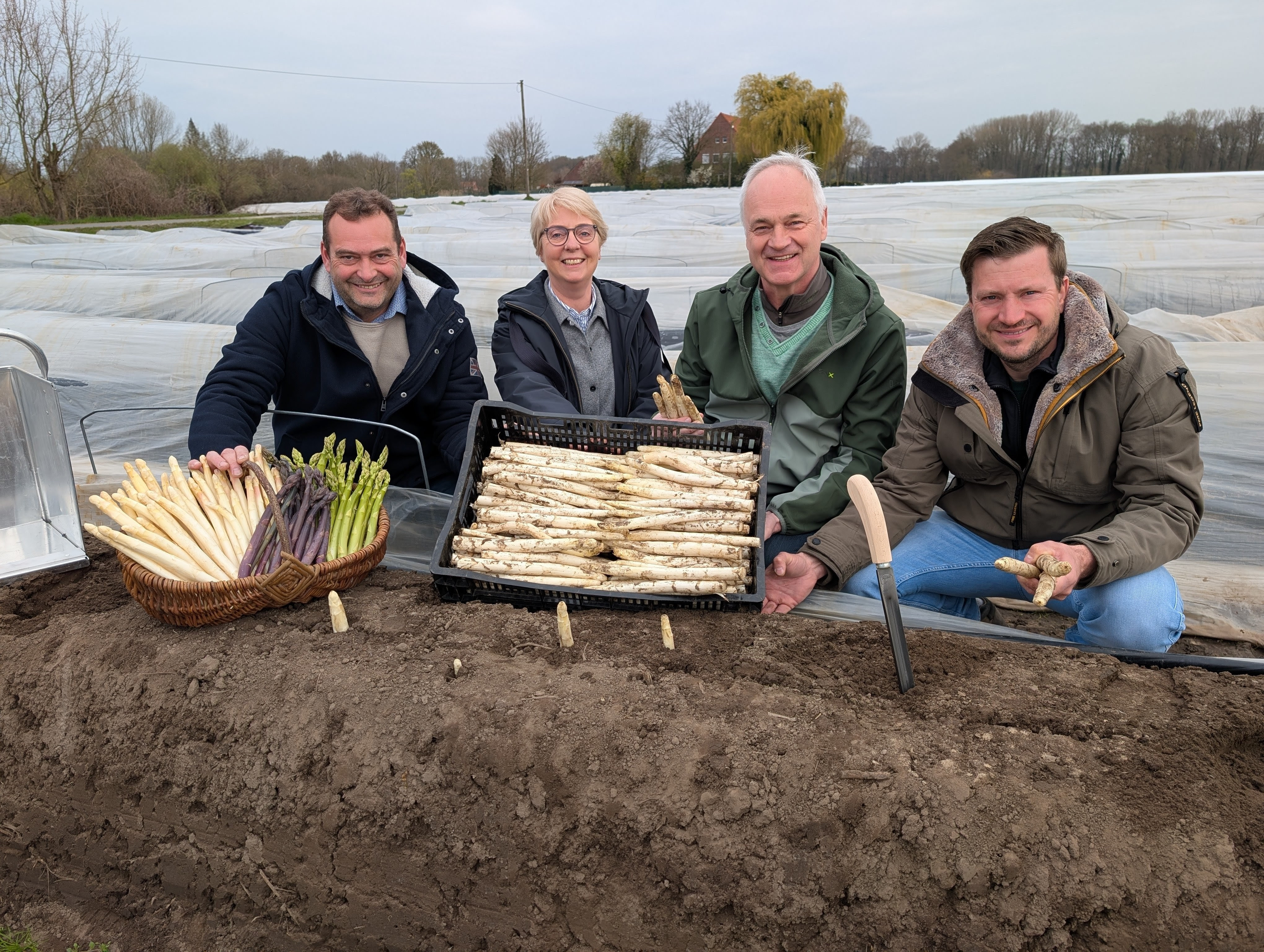 Münster <WLV> Die Spargelsaison 2026 in Münster ist offiziell eröffnet – passend zum Osterfest! Stephan Bäcker vom Spargelhof Bäcker in Gelmer freut sich gemeinsam mit seinen Kollegen Wilhelm Spielbrink und Burkhard Lütke Laxen über den Start in eine Saison, die beste Voraussetzungen für Qualität und Genuss des heimischen Kaisergemüses verspricht. Die warmen Februartage haben den Spargel gut heranwachsen lassen. Die Anbauer nutzen bis zu drei Abdeckungen aus Folie und Tunnel, um die Sonnenwärme optimal einzufangen und das Wachstum der Stangen zu begünstigen. Schon seit Mitte März wird der erste Spargel von den Münsteraner Feldern geerntet. Der heimische Spargel punktet mit Frische, Qualität und Geschmack.
