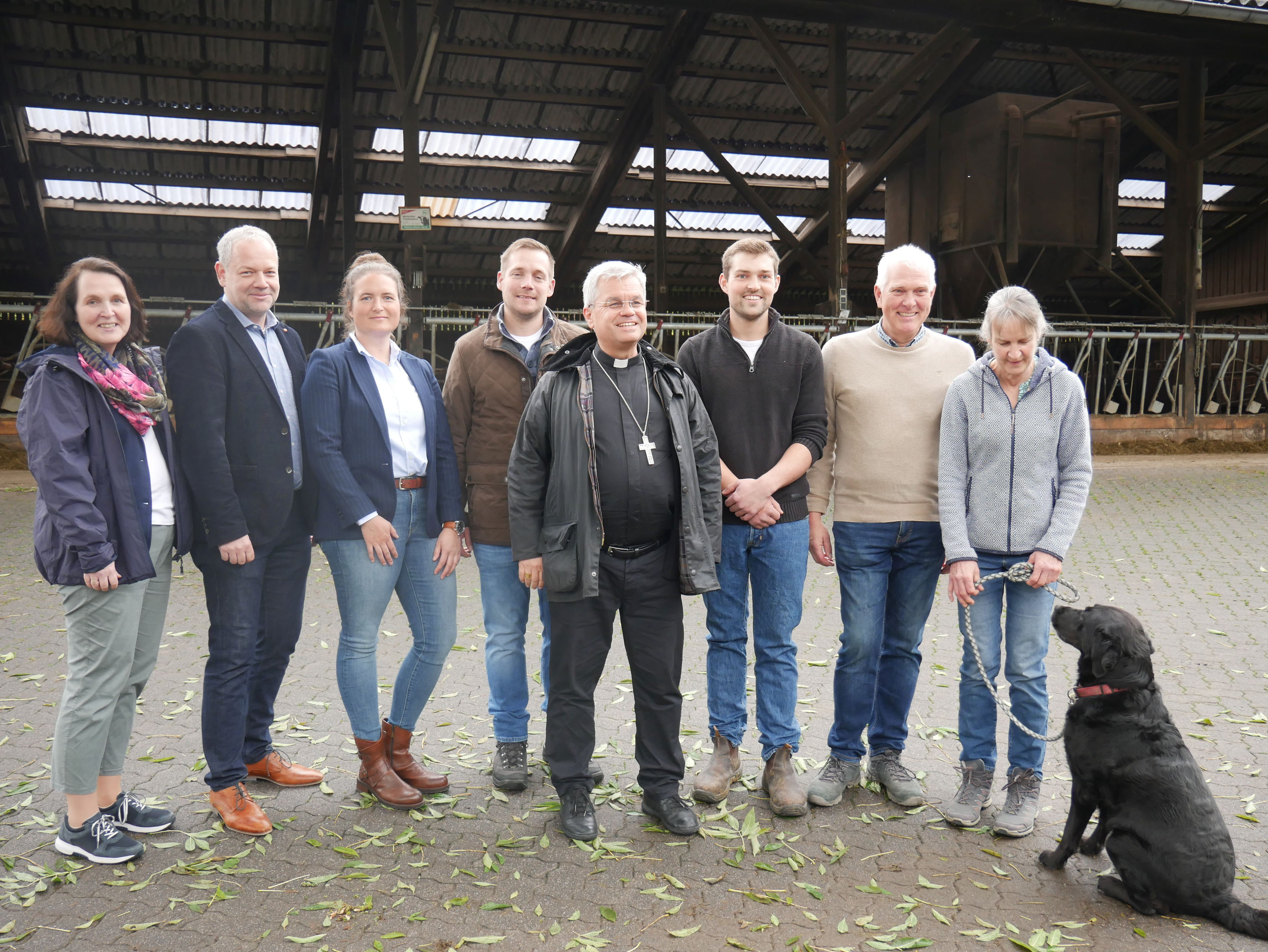 Besonders in Erinnerung bleiben wird ihm sicherlich der Besuch beim Vorsitzenden des Landwirtschaftlichen Kreisverbandes Olpe, Michael Richard, auf dem Bauernhof in der Petmecke in Grevenbrück, der inzwischen an Sohn Christian übertragen worden ist. Christian und Michael Richard erklärten dem Geistlichen das Zusammenspiel von Milch- und Waldwirtschaft sowie Urlaub auf dem Bauernhof auf der idyllisch gelegenen Hofstätte am Ende eines Tales. Mit dabei der stellvertretende Kreisverbandsvorsitzende Bernd Eichert, Kreislandwirtin Lisa Sternberg und Stefan Becker-Borggräfe, Vorsitzender des landwirtschaftlichen Ortsverbandes Lennestadt.