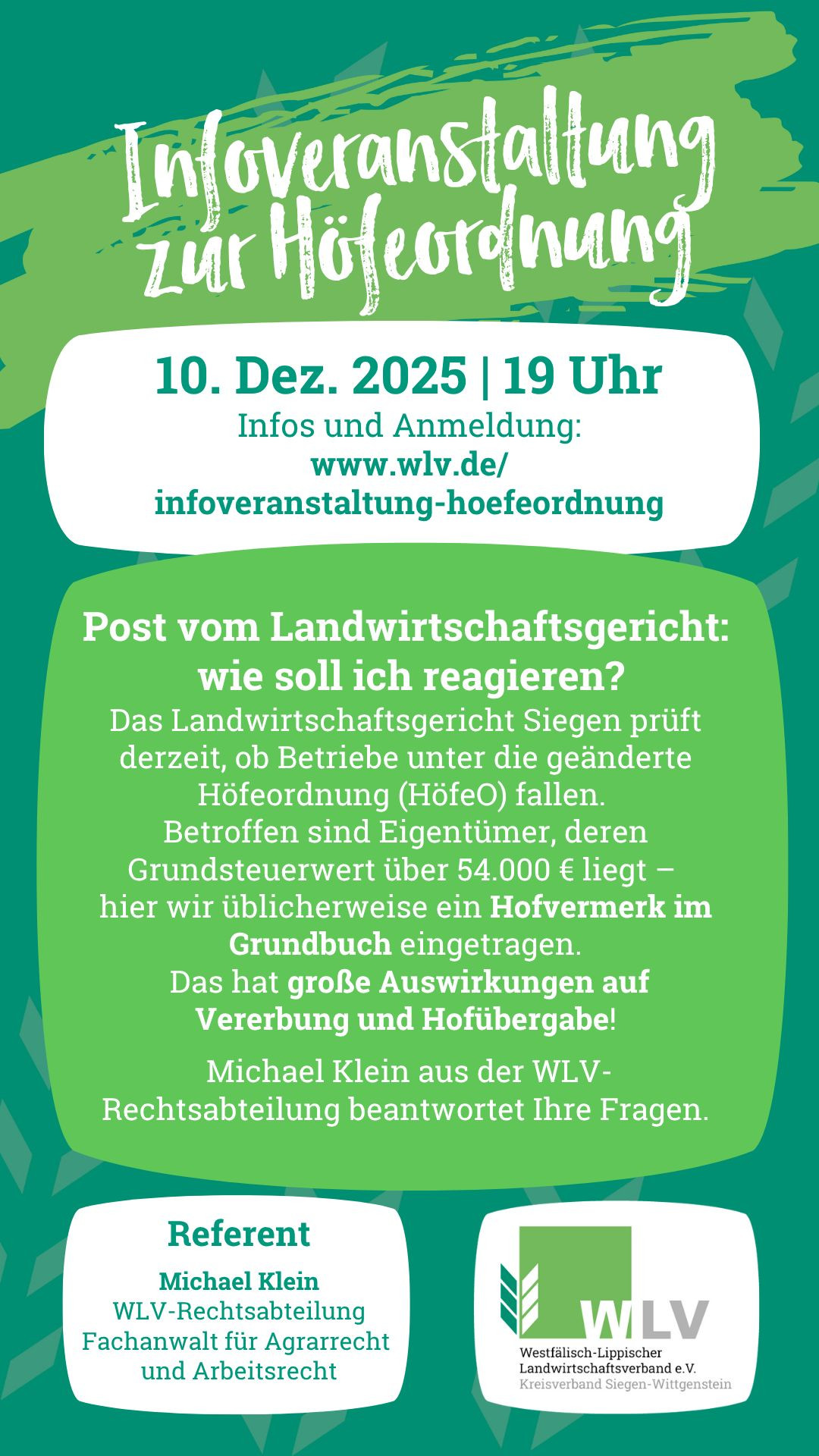 WLV, KV Siegen-Wittgenstein, Online-Informationsveranstaltung zur Hofeigenschaft