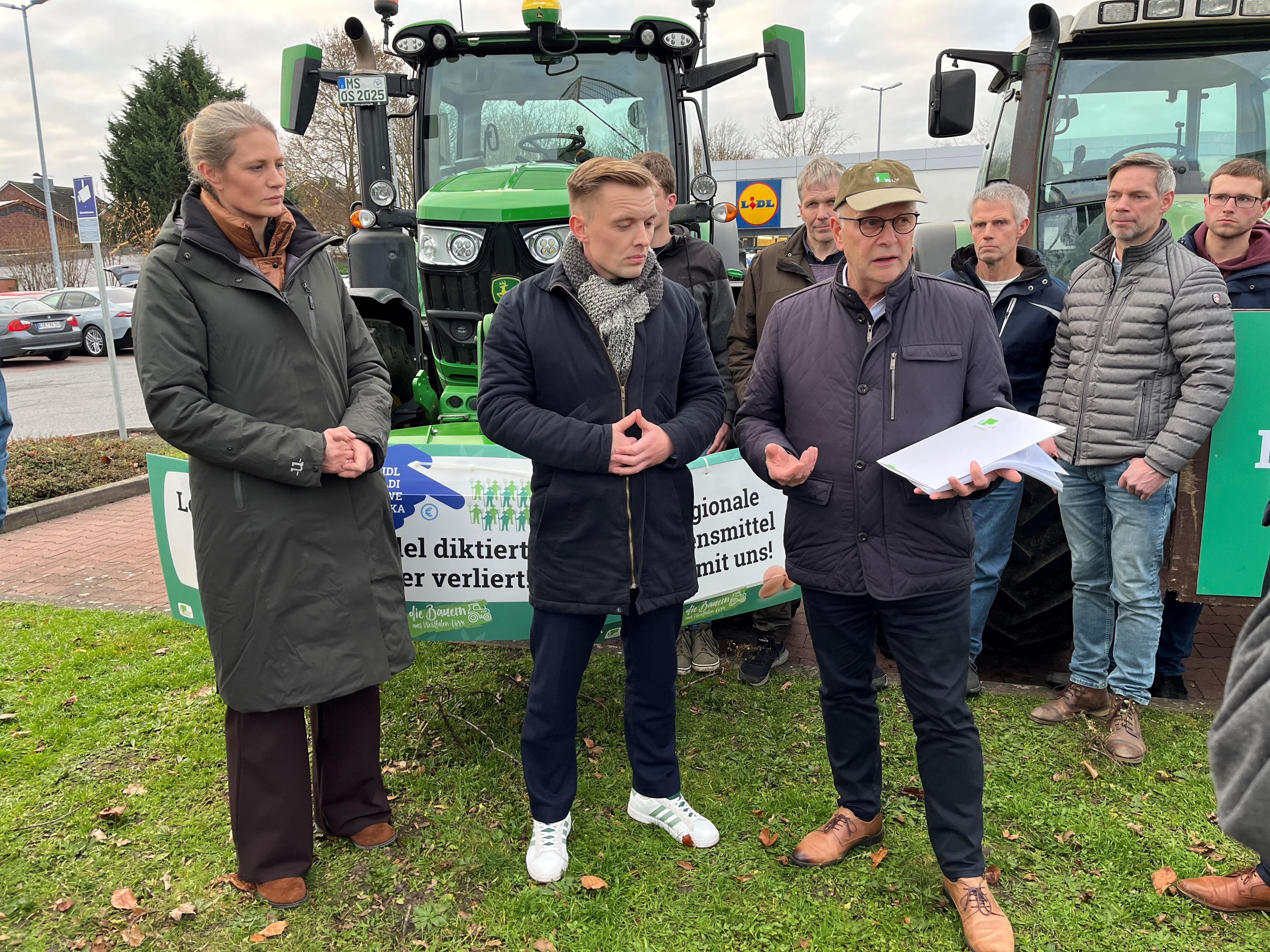 Für rund 2.700 Milchviehbetriebe in Westfalen-Lippe sind die Auswirkungen eines anhaltenden Preisdumpings unmittelbar spürbar und nach Einschätzung des Westfälisch-Lippischen Landwirtschaftsverbandes fatal: sinkende Einkommen, fehlende Wertschätzung für hochwertige Lebensmittel und eine Gefährdung der regionalen Landwirtschaft sind die Folge. Mit einer entsprechenden Aktion vor der Lidl-Filiale in Münster-Wolbeck setzen Milchviehhalterinnen und Milchviehhalter daher ein Zeichen für mehr Wertschätzung der regionalen Lebensmittelproduktion durch den Lebensmitteleinzelhandel.